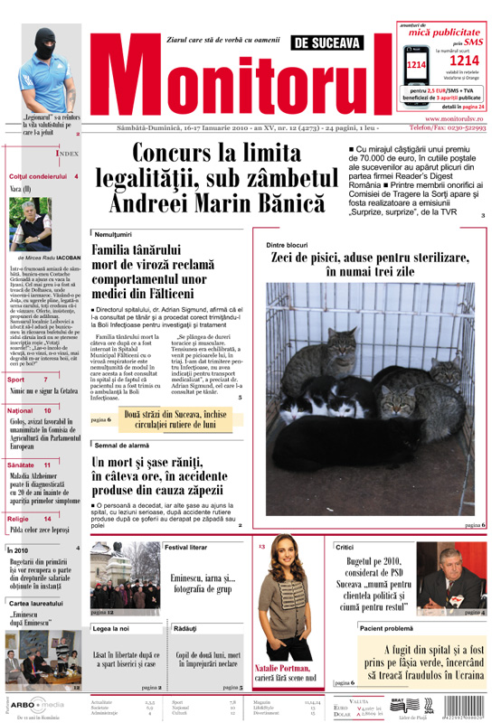 Newsletter Monitorul de Suceava RSS Monitorul de Suceava Monitorul de Suceava pe YouTube Monitorul de Suceava pe Twitter Monitorul de Suceava pe Facebook