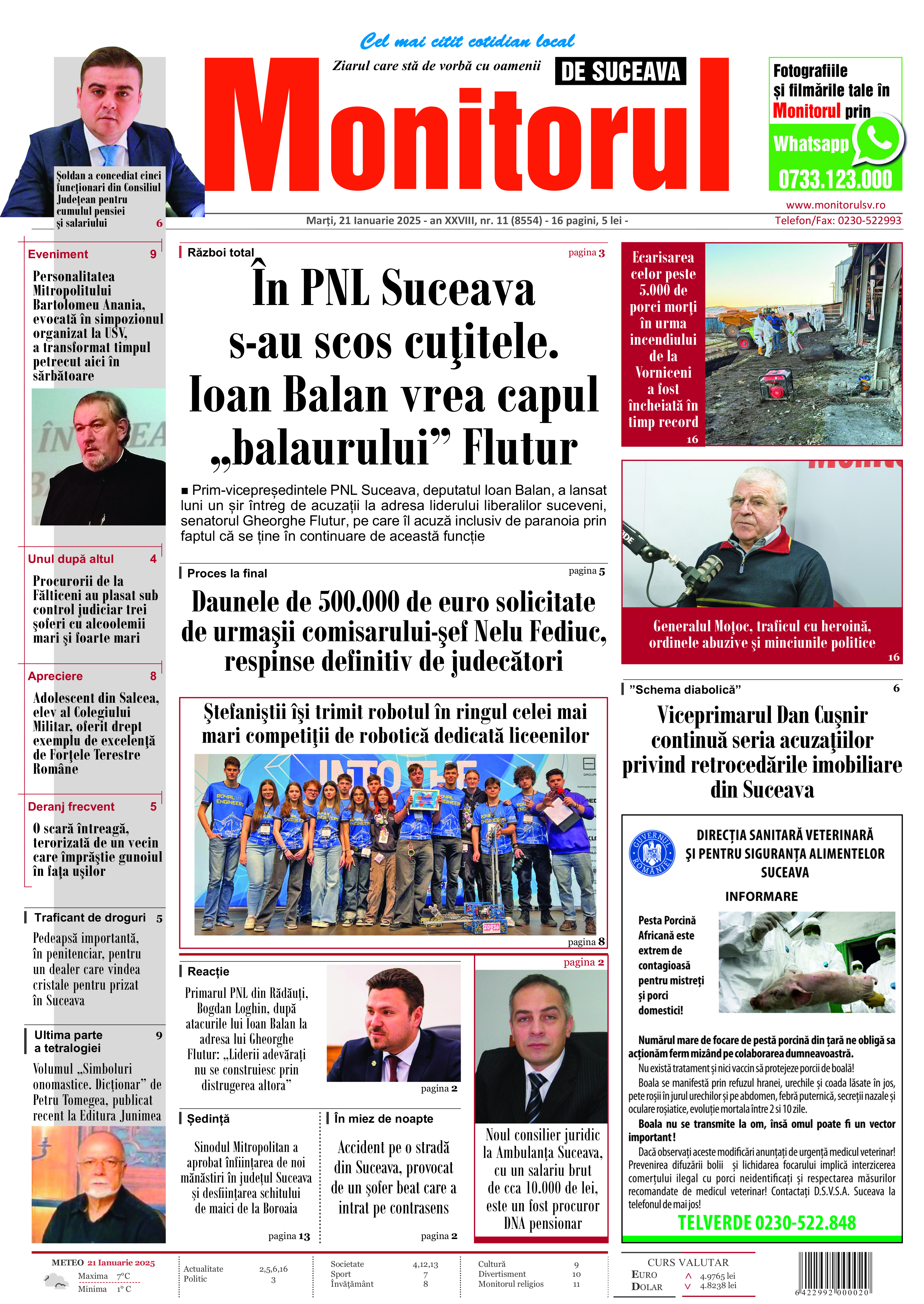 Newsletter Monitorul de Suceava RSS Monitorul de Suceava Monitorul de Suceava pe YouTube Monitorul de Suceava pe Twitter Monitorul de Suceava pe Facebook
