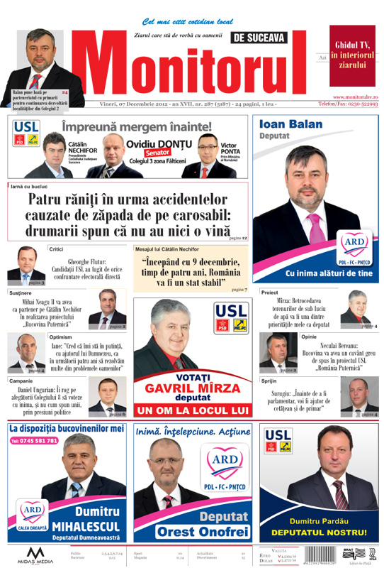 vineri, 7 dec 2012 - Anul XVII, nr. 287 (5192)