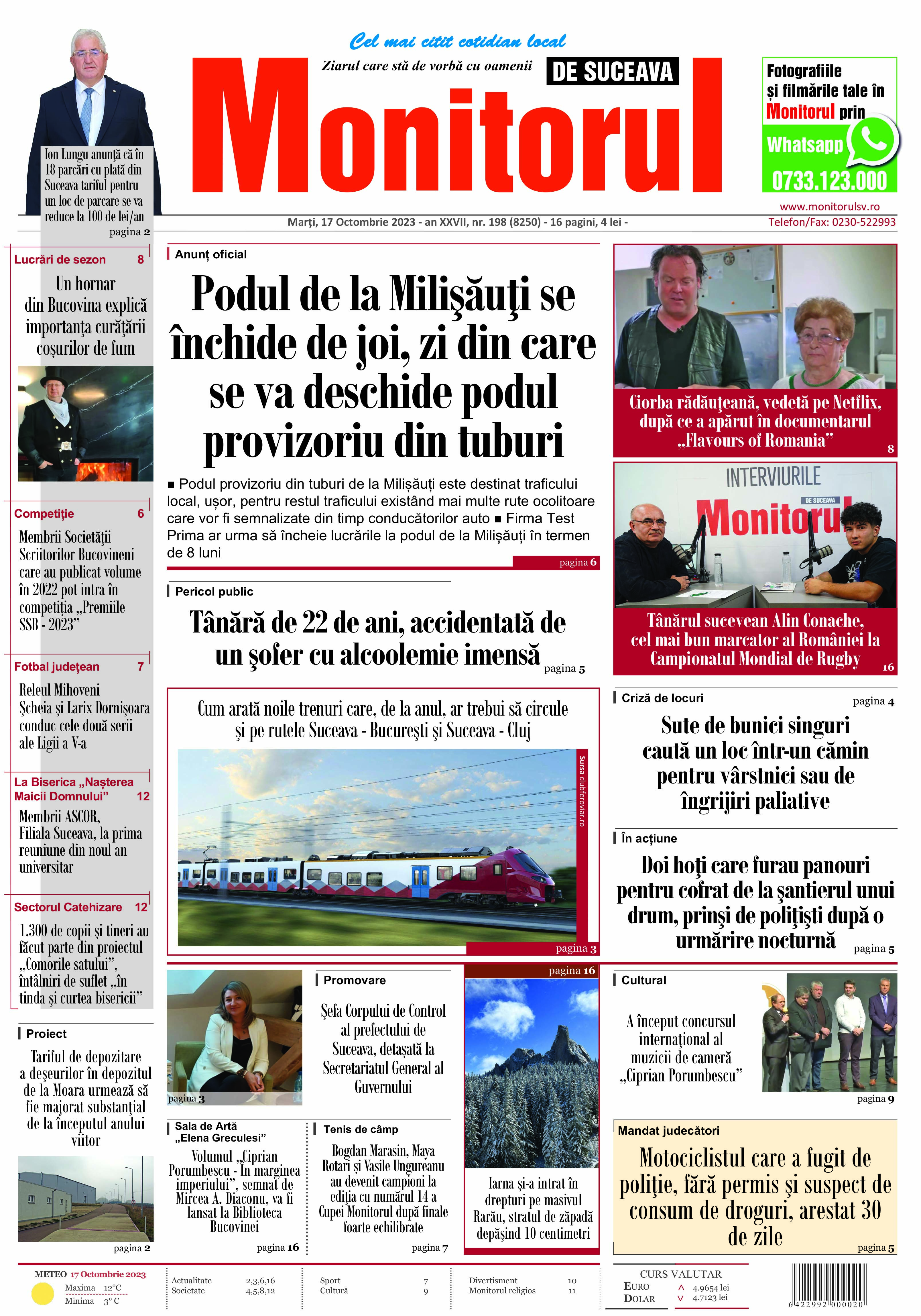 Newsletter Monitorul de Suceava RSS Monitorul de Suceava Monitorul de Suceava pe YouTube Monitorul de Suceava pe Twitter Monitorul de Suceava pe Facebook