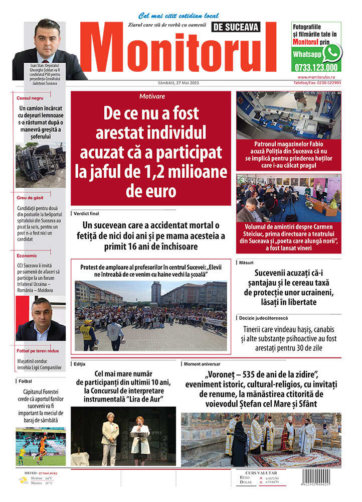 Newsletter Monitorul de Suceava RSS Monitorul de Suceava Monitorul de Suceava pe YouTube Monitorul de Suceava pe Twitter Monitorul de Suceava pe Facebook