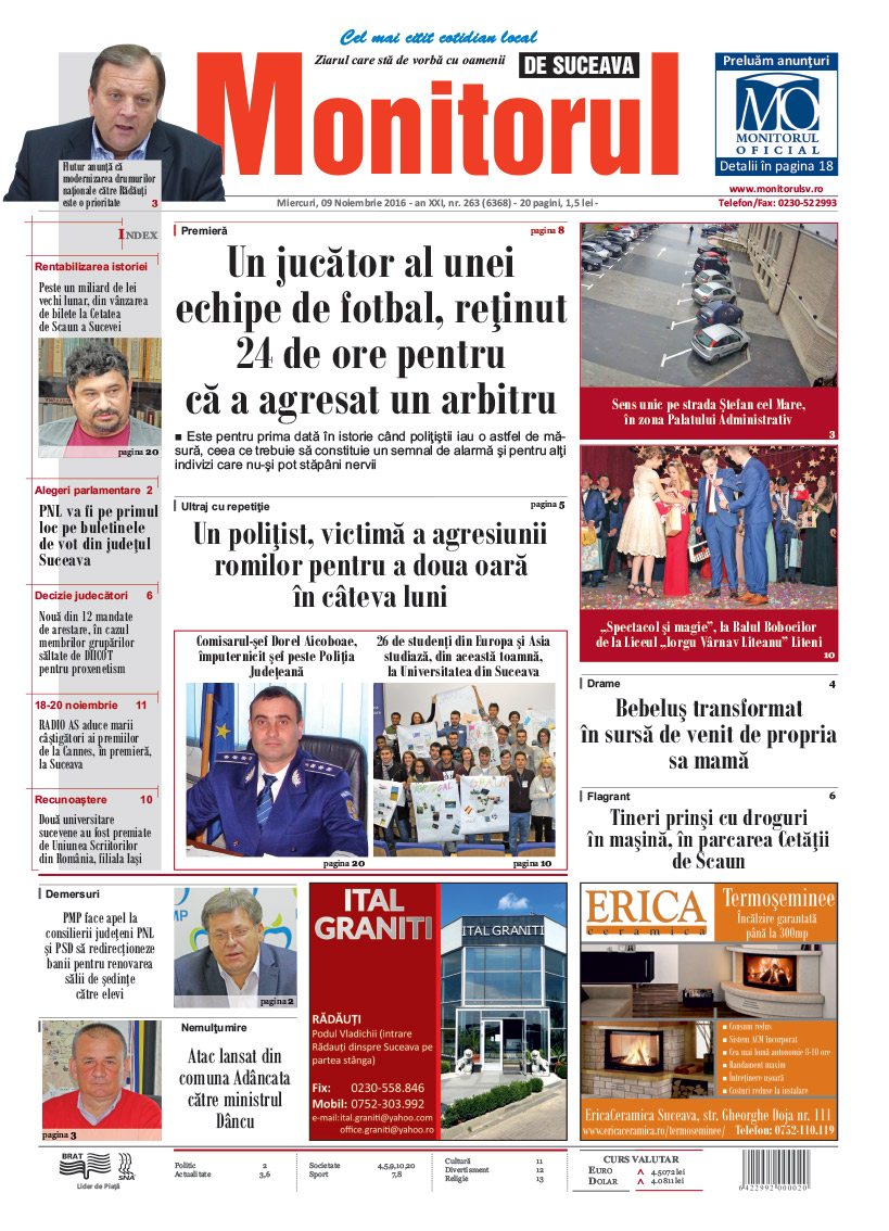 miercuri, 9 nov 2016 - Anul XXI, nr. 263 (6376)