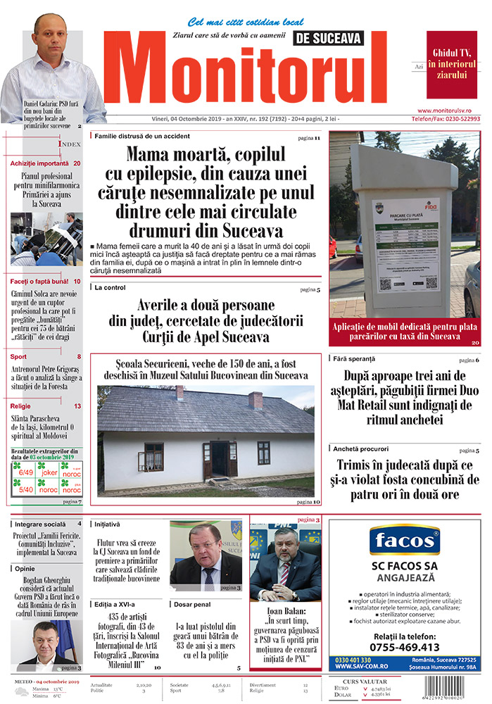 vineri, 4 oct 2019 - Anul XXIV, nr. 232 (7233)