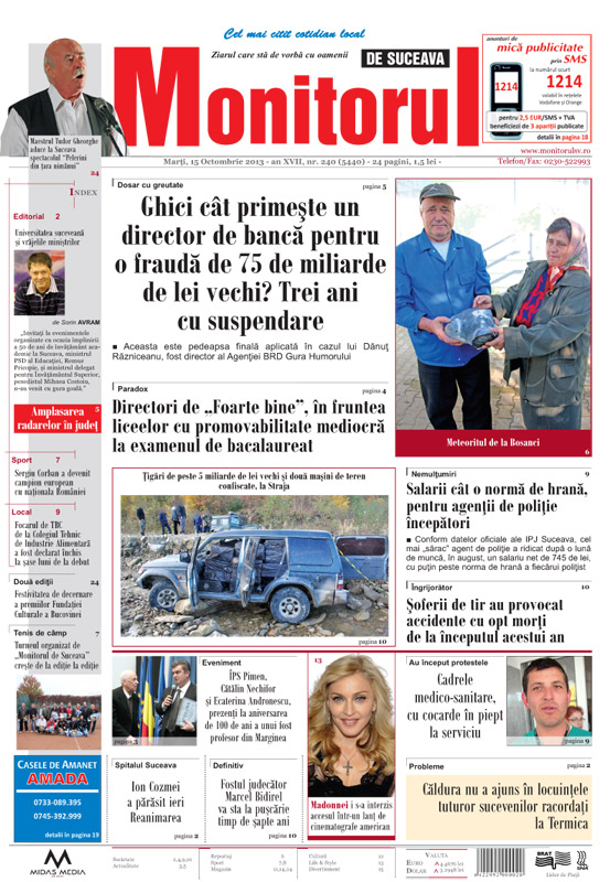 marţi, 15 oct 2013 - Anul XVIII, nr. 240 (5447)