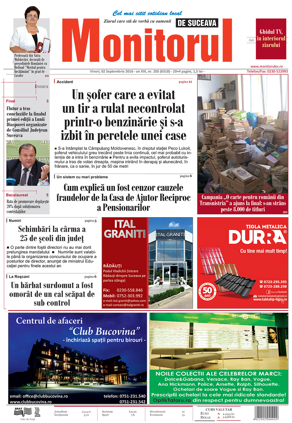 vineri, 2 sep 2016 - Anul XXI, nr. 205 (6318)