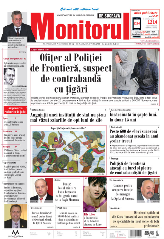 Newsletter Monitorul de Suceava RSS Monitorul de Suceava Monitorul de Suceava pe YouTube Monitorul de Suceava pe Twitter Monitorul de Suceava pe Facebook
