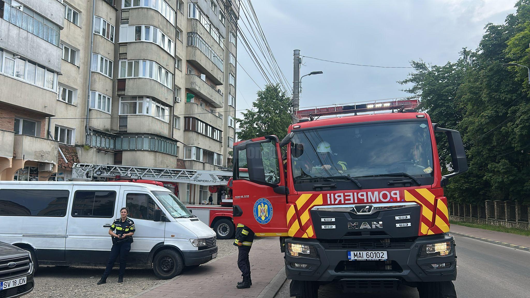 Pompierii militari suceveni au intervenit, marți, în jurul orei 14.00, la un incendiu izbucnit la etajul VII al unui bloc turn din cartierul Burdujeni al municipiului Suceava.