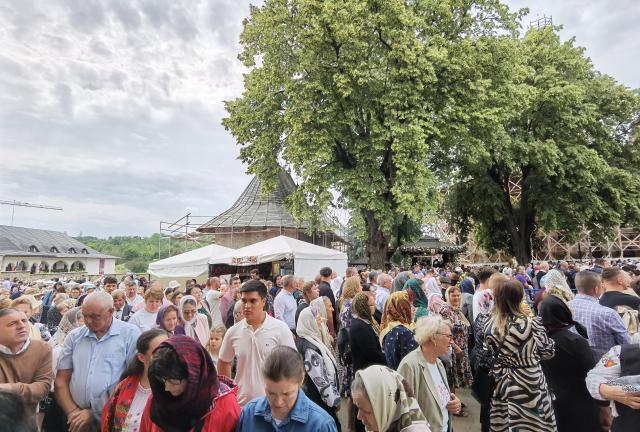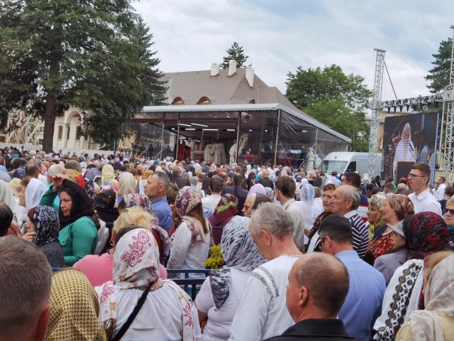 Curtea mănăstirii s-a dovedit neîncăpătoare pentru numărul mare de credincioși veniți din toate părțile, inclusiv pelerini din alte județe, unii vizibili după portul popular din Bistrița ori Maramureș.