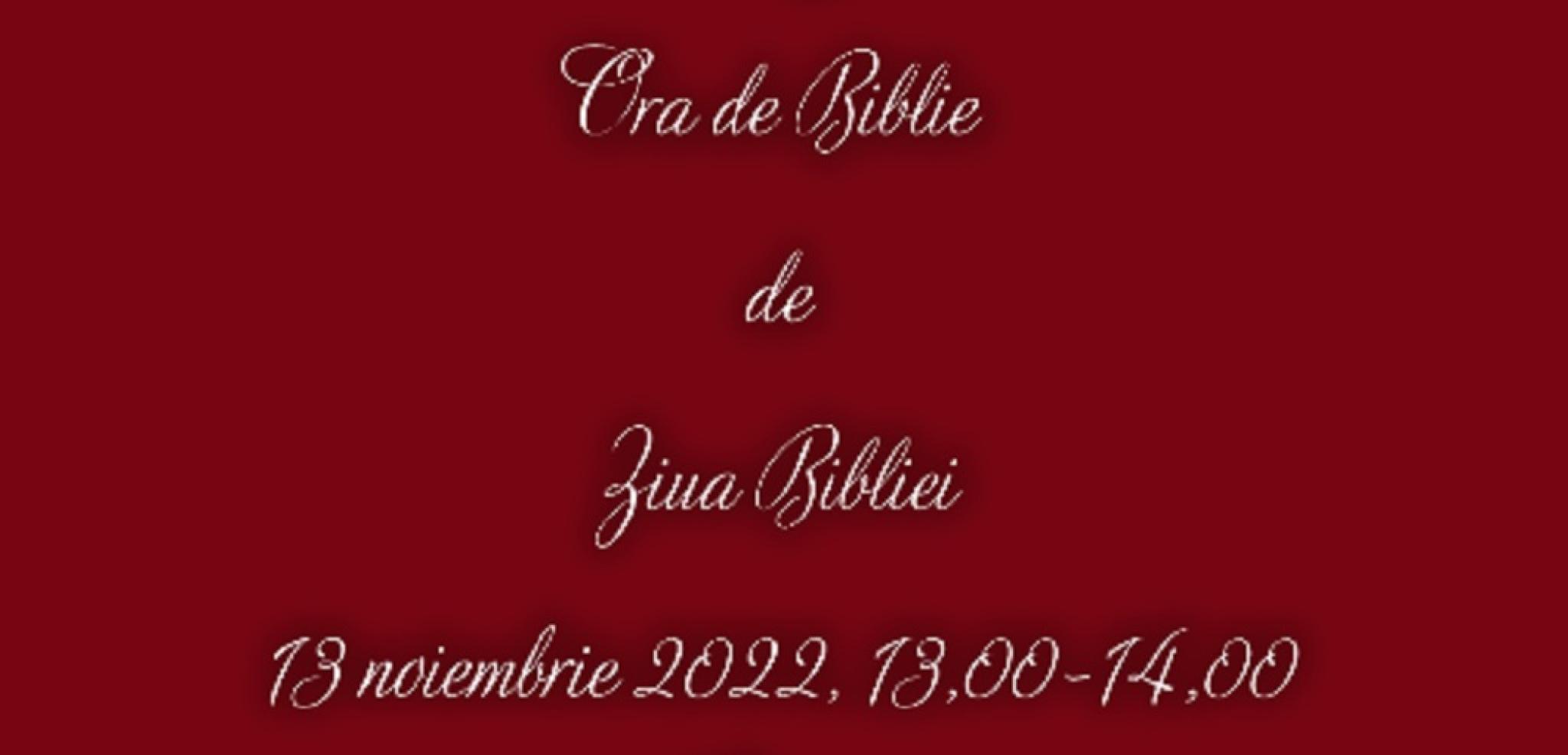 În ziua de 13 noiembrie a.c., în intervalul orar 13.00-14.00, în toate școlile din județul Suceava, înscrise în program, prin completarea formularului atașat, https://forms.gle/spupZuFLgsz4dWUz9 , se va desfășura o oră de lectură biblică, fiecare grup/clasă de participanți citind cu prioritate capitolele repartizate, conform desfășurătorului de lectură biblică ce va fi transmis de către echipa județeană de proiect, în data de 10 noiembrie a.c.