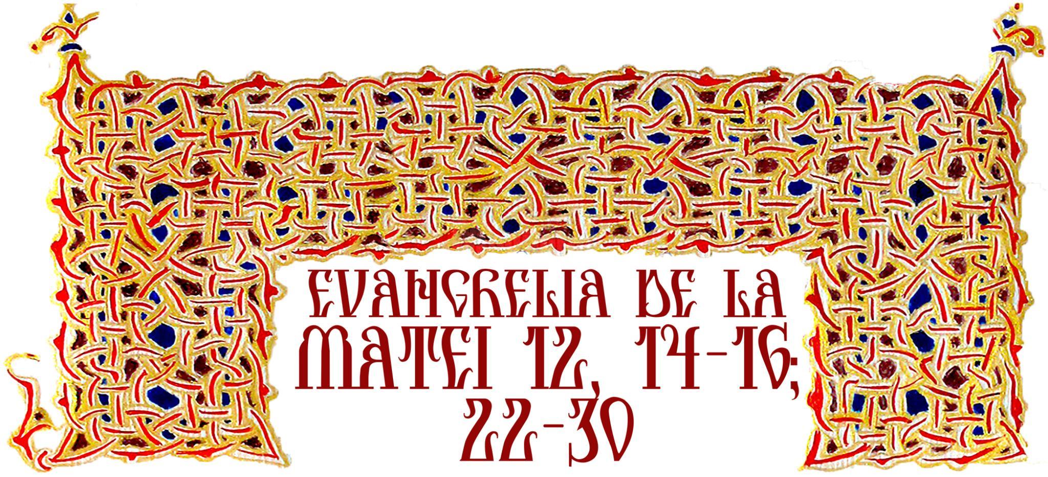 În vremea aceea fariseii s-au sfătuit împotriva lui Iisus cum să-L piardă. Însă Iisus, cunoscându-i, S-a dus de acolo. Și mulți au venit după El și i-a vindecat pe toți. Dar le-a poruncit ca să nu-L dea în vileag. Atunci au adus la El pe un demonizat, orb și mut, și l-a vindecat, încât cel orb și mut vorbea și vedea. Iar mulțimile toate se mirau zicând: Nu este, oare, Acesta Fiul lui David? Fariseii însă, auzind, ziceau: Acesta nu scoate pe demoni decât cu Beelzebul, căpetenia diavolilor. Cunoscând gândurile lor, Iisus le-a zis: Orice împărăție care se dezbină în sine se pustiește, orice cetate sau casă care se dezbină în sine nu va dăinui. Dacă Satana scoate pe Satana, s-a dezbinat în sine; dar atunci, cum va putea dăinui împărăția lui? Și dacă Eu scot pe diavoli cu Beelzebul, feciorii voștri cu cine îi scot? De aceea ei vă vor fi judecători. Iar dacă Eu cu Duhul lui Dumnezeu scot pe diavoli, iată, a ajuns la voi Împărăția lui Dumnezeu. Cum poate cineva să intre în casa celui tare și să-i jefuiască lucrurile dacă nu va lega întâi pe cel tare și pe urmă să-i prade casa? Cine nu este cu Mine, este împotriva Mea, și cine nu adună cu Mine, risipește.