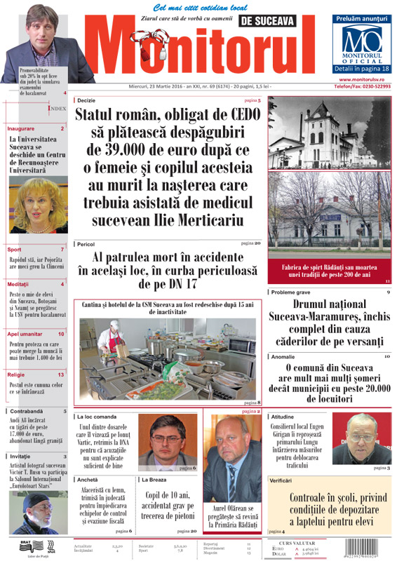 | Statul român, obligat de CEDO să plătească despăgubiri de 39.000 de euro după ce o femeie şi copilul acesteia au murit la naşterea care trebuia asistată de medicul sucevean Ilie Merticariu |