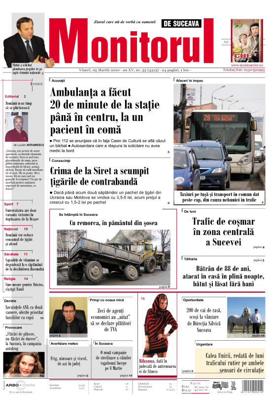 Newsletter Monitorul de Suceava RSS Monitorul de Suceava Monitorul de Suceava pe YouTube Monitorul de Suceava pe Twitter Monitorul de Suceava pe Facebook