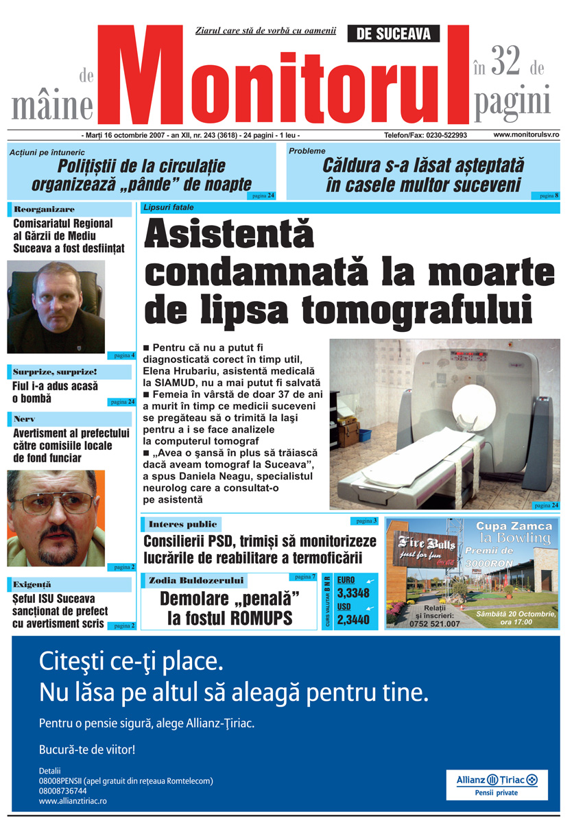| Asistentă condamnată la moarte de lipsa tomografului |