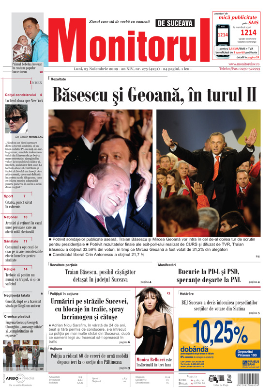 | Băsescu şi Geoană în turul doi |