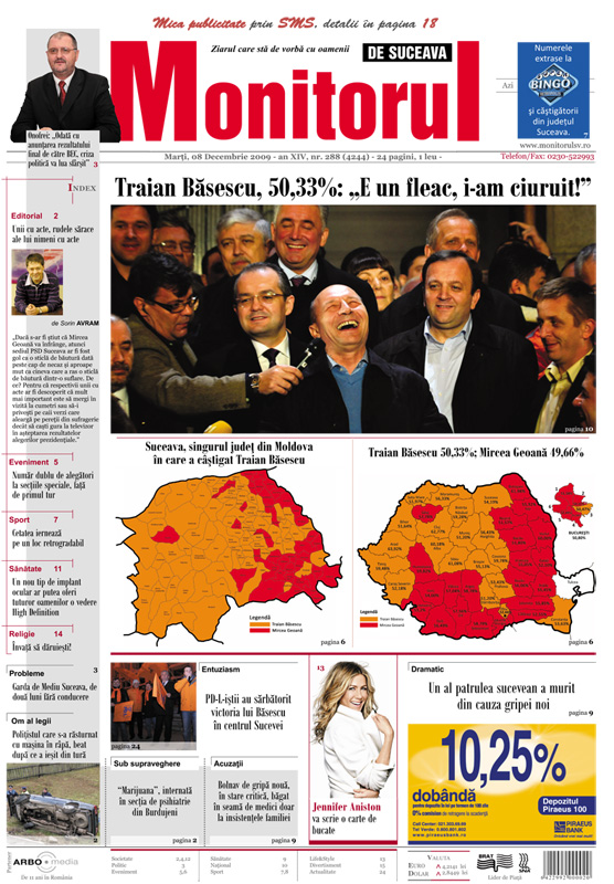 | Suceava, singurul judeţ din Moldova în care a câştigat Traian Băsescu |