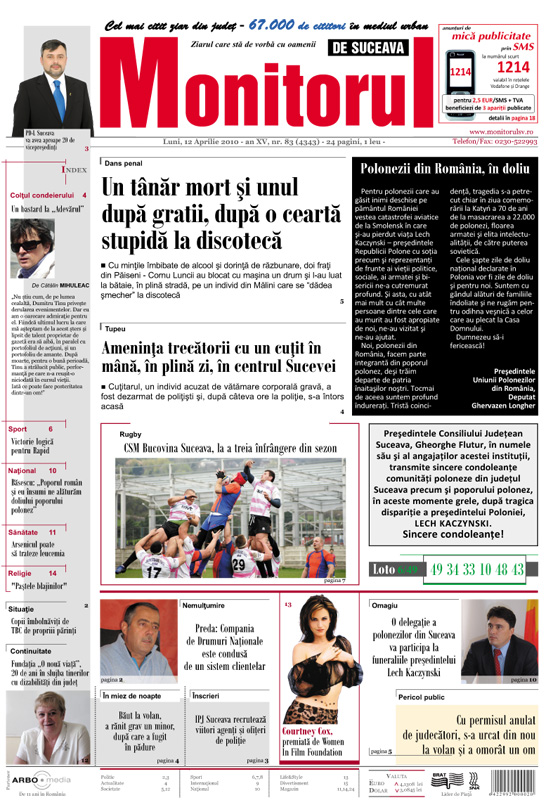 FOTOPreşedintele polonez, Lech Kaczynski, mort într-un accident aviaticBalul Bobocilor de la Colegiul de Artă „Ciprian Porumbescu”