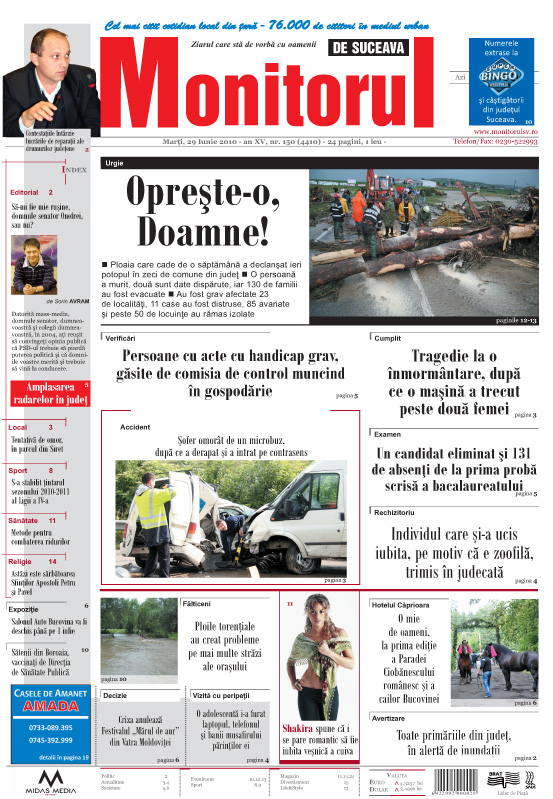 VIDEOFOTOŞofer omorât de un microbuz, după ce a derapat şi a intrat pe contrasensBalul Bobocilor de la Colegiul Naţional „Petru Rareş”