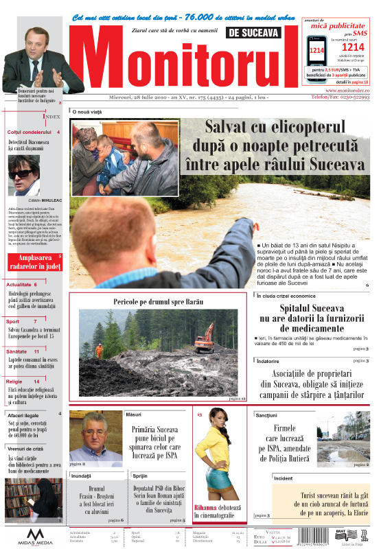 | Salvat cu elicopterul după o noapte petrecută între apele râului Suceava |