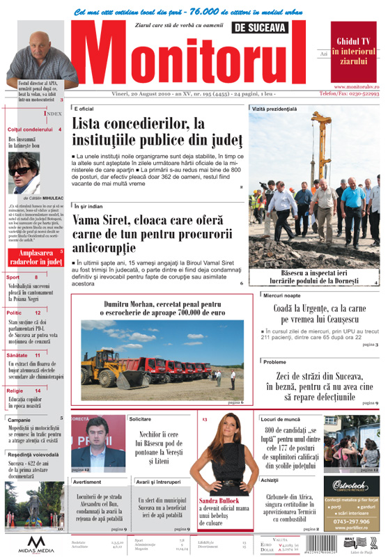 VIDEOFOTOBăsescu a inspectat ieri lucrările podului de la DorneştiBalul Bobocilor de la Colegiul de Informatică ”Spiru Haret”