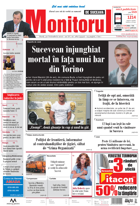 | Sucevean înjunghiat mortal în faţa unui bar din Torino |
