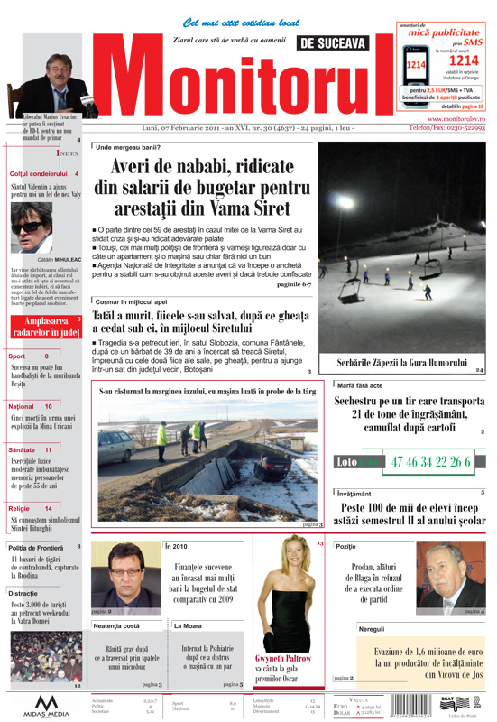 | Finanţele sucevene au încasat mai mulţi bani la bugetul de stat comparativ cu 2009 |