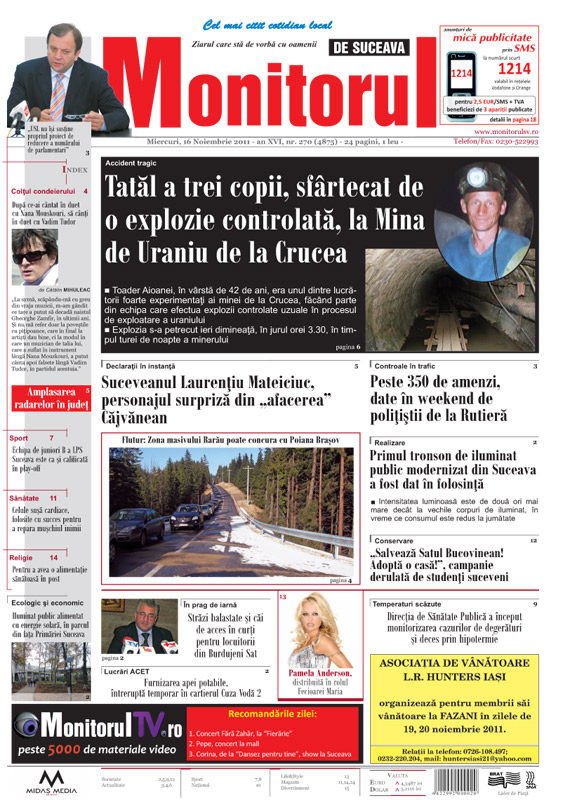 | Tatăl a trei copii, sfârtecat de o explozie controlată, la Mina de Uraniu de la Crucea |