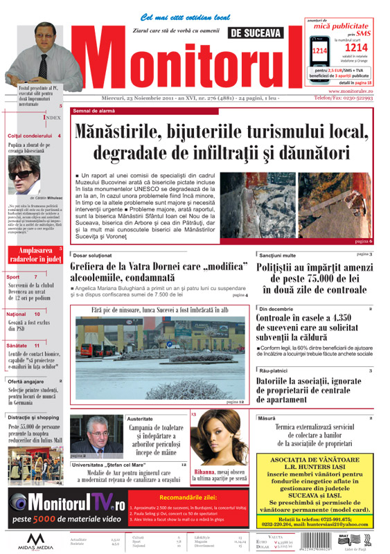 | Mănăstirile, bijuteriile turismului local, degradate de infiltraţii şi dăunători |
