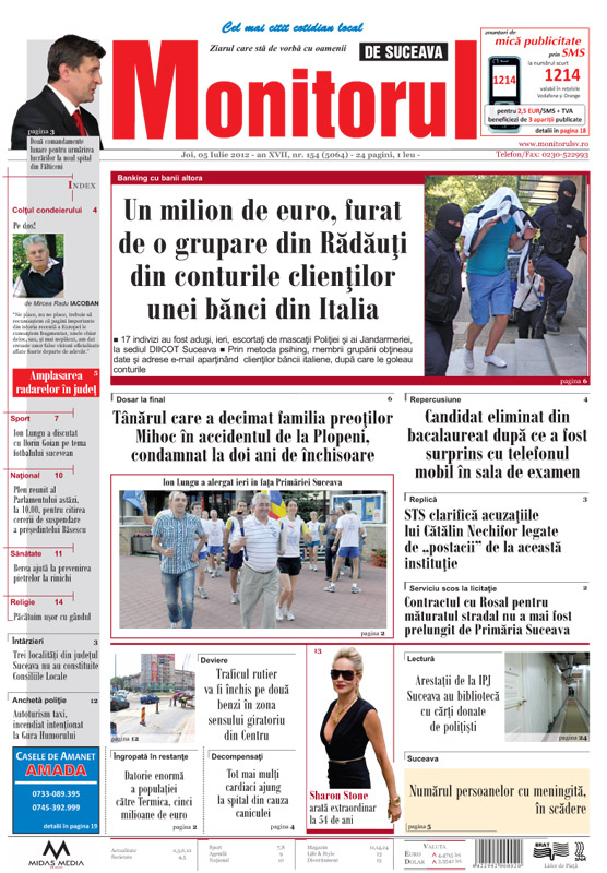 | Un milion de euro, furaţi de o grupare din Rădăuţi din conturile clienţilor unei bănci din Italia |