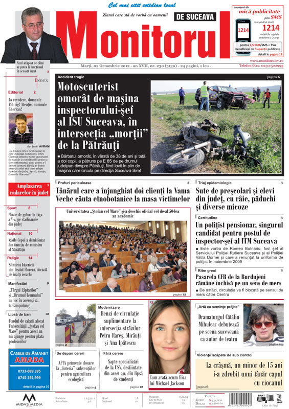 | Motoscuterist omorât de maşina inspectorului-şef al ISU Suceava, în intersecţia „morţii” de la Pătrăuţi |