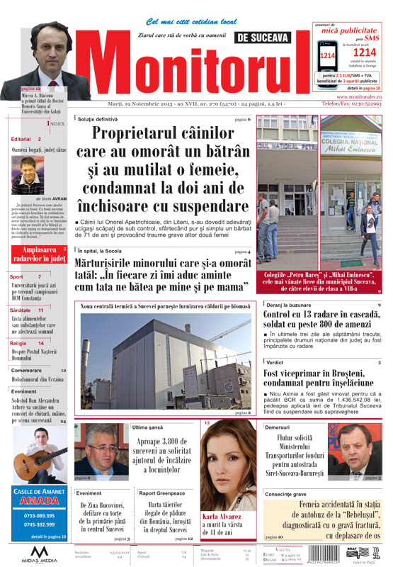 marţi, 19 nov 2013 - Anul XVIII, nr. 270 (5477)