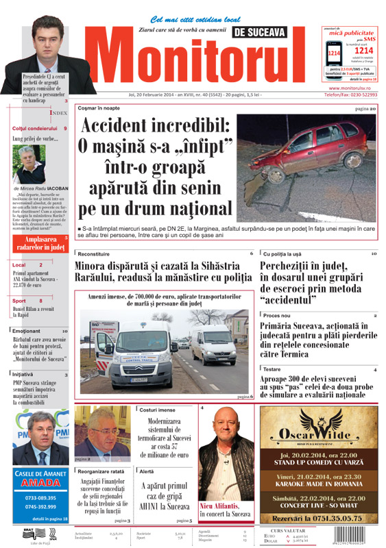 VIDEOFOTOMinora dispărută şi cazată la Sihăstria Rarăului, readusă la mănăstire cu poliţiaBalul Bobocilor de la Colegiul Naţional „Petru Rareş”