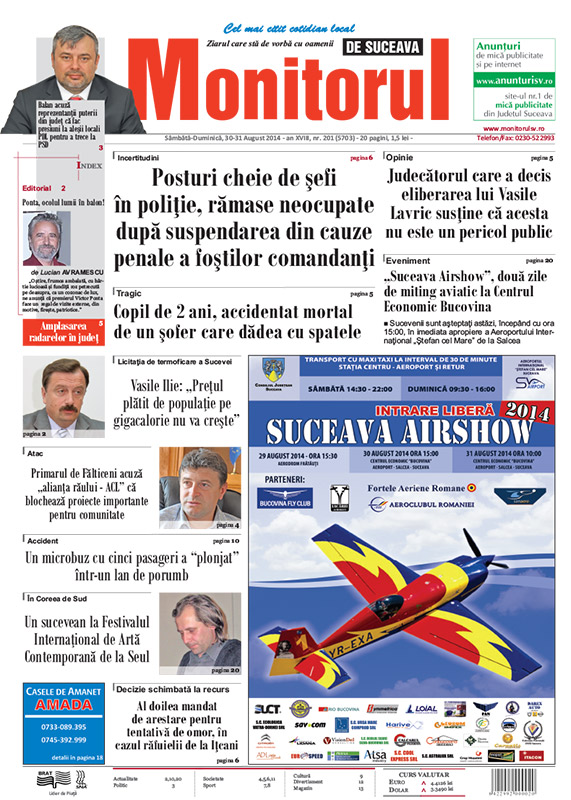 „Suceava Airshow”, două zile de miting aviatic la Centrul Economic BucovinaBalul Bobocilor de la Colegiul Naţional ”Ştefan cel Mare”