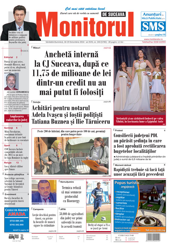 | Anchetă internă la CJ Suceava, după ce 11,75 de milioane de lei dintr-un credit nu au mai putut fi folosiţi |