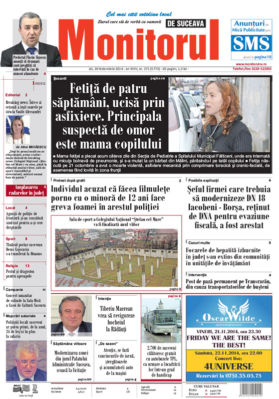 | Fetiţă de patru săptămâni, ucisă prin asfixiere. Principala suspectă de omor este mama copilului |