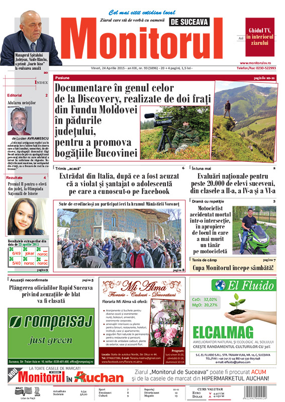 | Documentare în genul celor de la Discovery, realizate de doi fraţi din Fundu Moldovei în pădurile judeţului, pentru a promova bogăţiile Bucovinei |