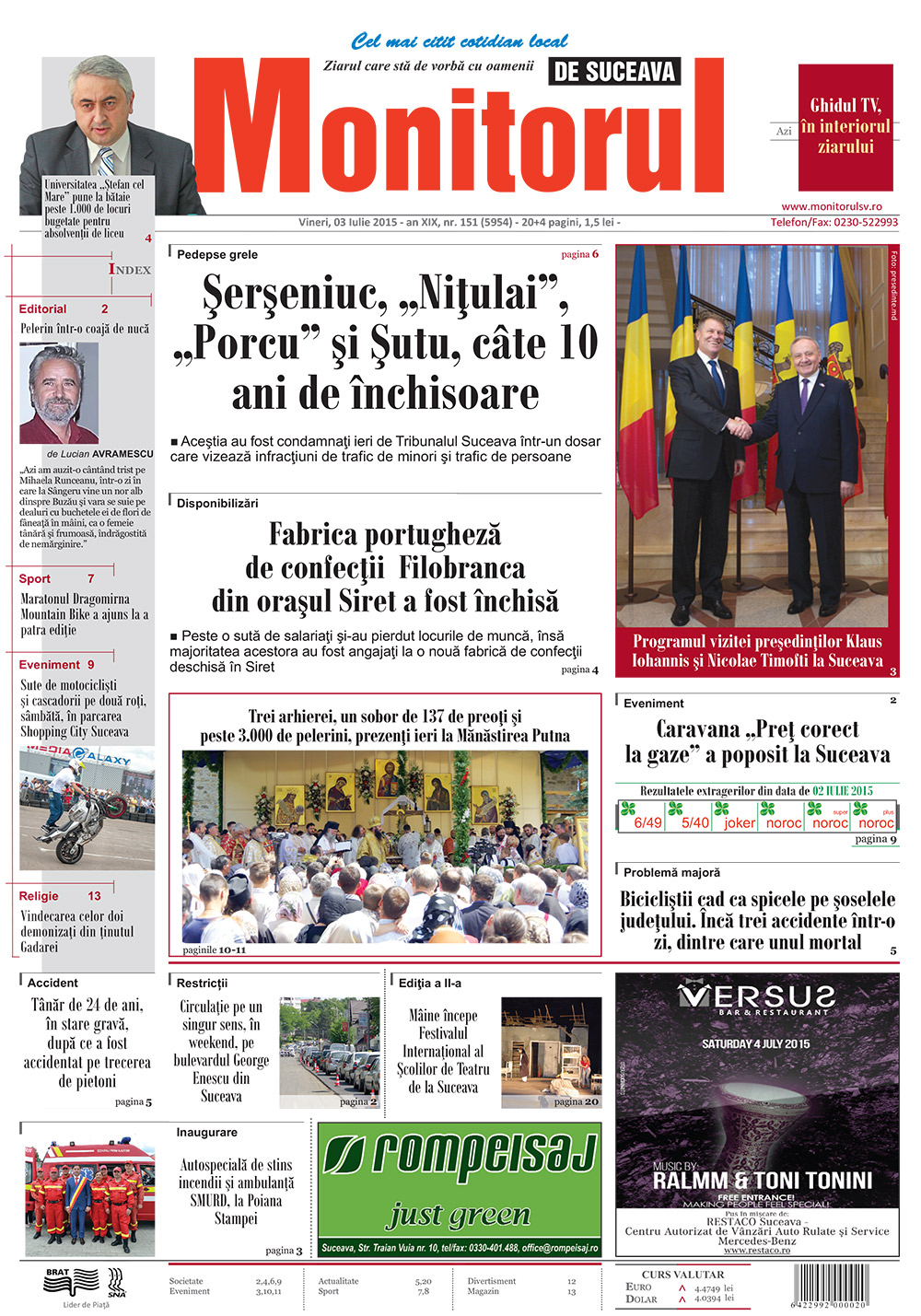 | Programul vizitei preşedinţilor Klaus Iohannis şi Nicolae Timofti la Suceava |