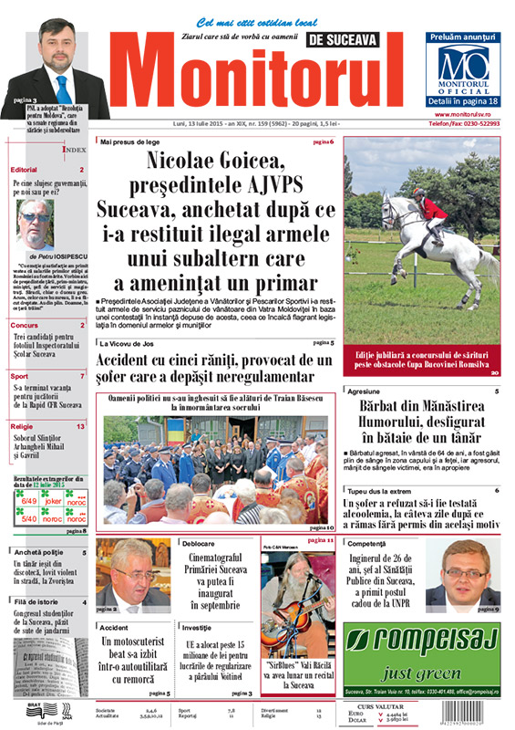 | Nicolae Goicea, preşedintele AJVPS Suceava, anchetat după ce i-a restituit ilegal armele unui subaltern care a ameninţat un primar |