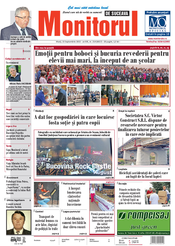 A murit notarul Dumitru NechitaBalul Bobocilor de la Colegiul de Artă „Ciprian Porumbescu”