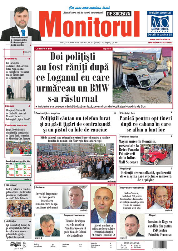 | Doi poliţişti au fost răniţi după ce Loganul cu care urmăreau un BMW s-a răsturnat |