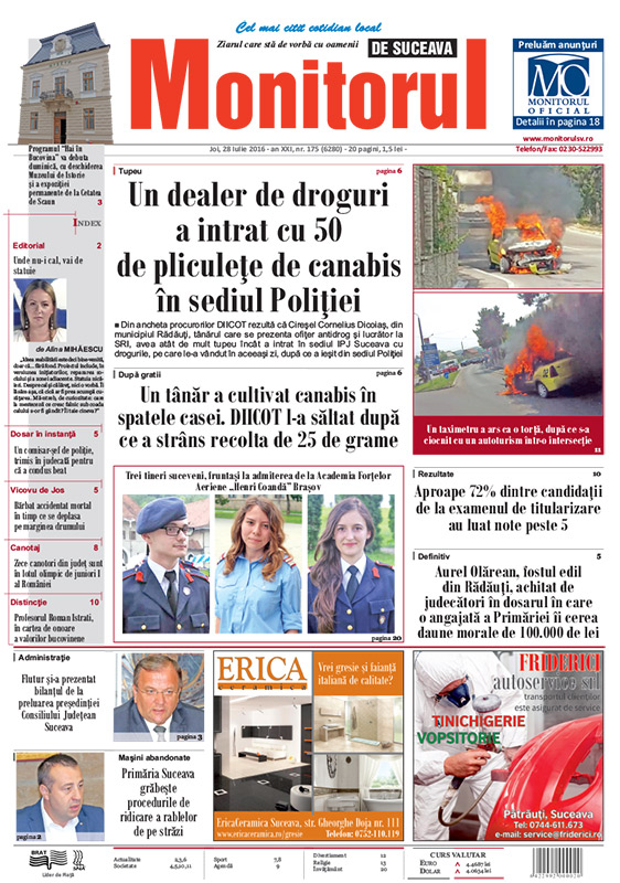 | Un dealer de droguri a intrat cu 50 de pliculeţe de canabis în sediul Poliţiei |