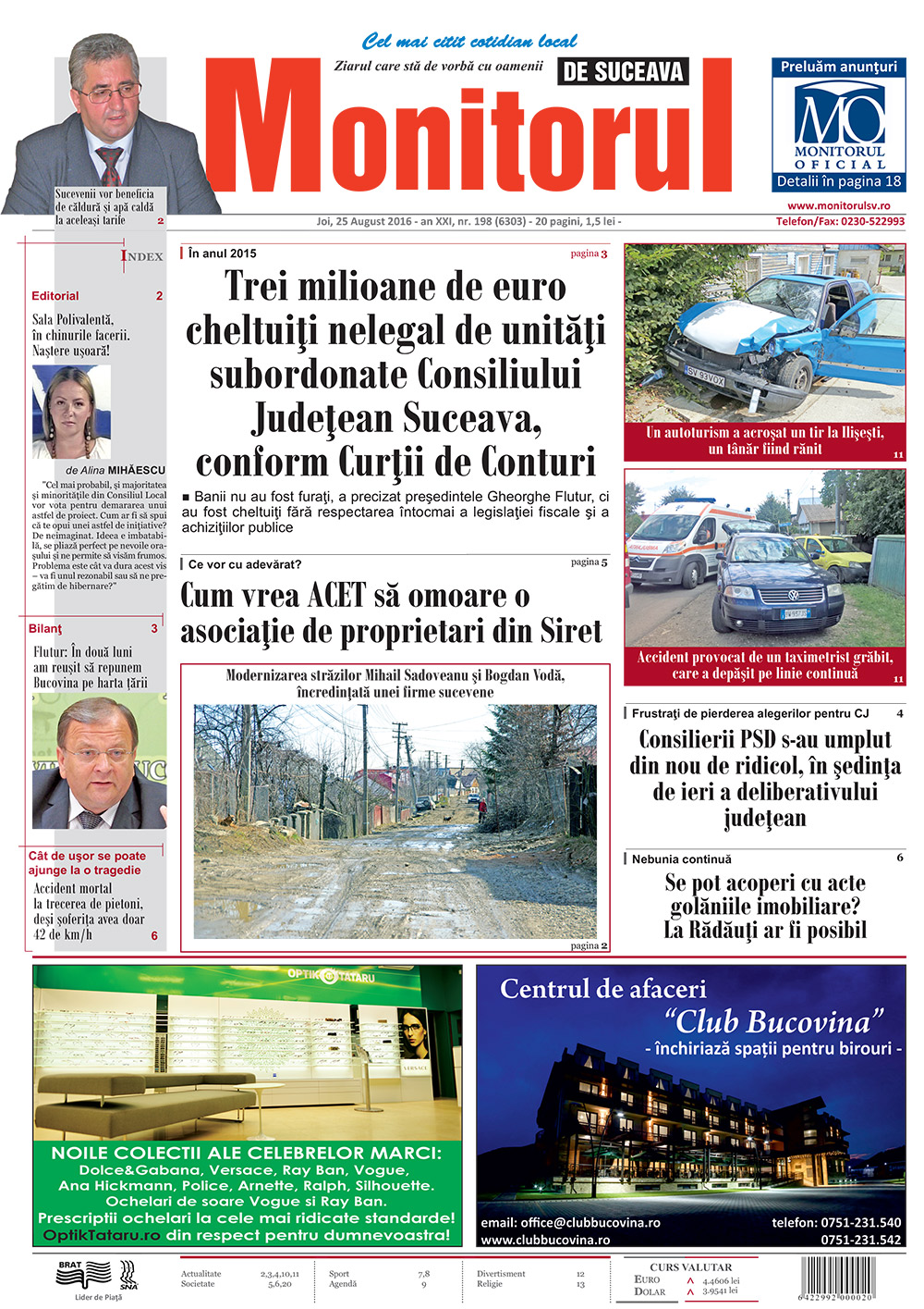 | Trei milioane de euro cheltuiţi nelegal de unităţi subordonate Consiliului Judeţean Suceava, conform Curţii de Conturi |