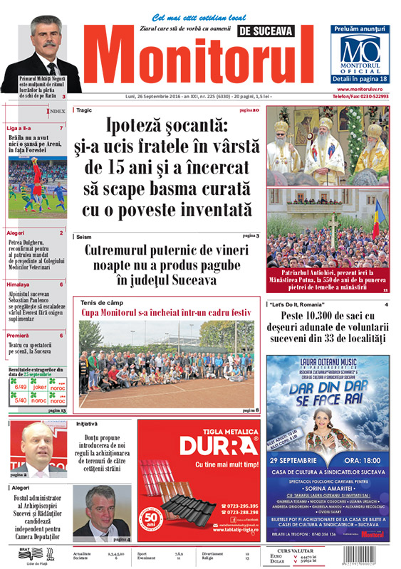 VIDEOFOTOPatriarhul Antiohiei, prezent ieri la Mănăstirea Putna, la 550 de ani de la punerea pietrei de temelie a mănăstiriiBalul Bobocilor de la Colegiul Naţional “Mihai Eminescu”