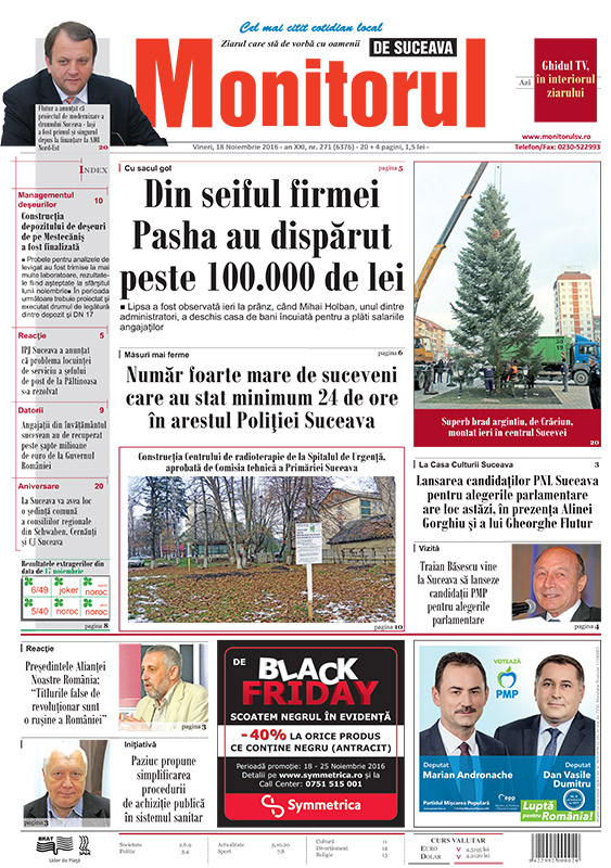 | Superb brad argintiu, de Crăciun, montat ieri în centrul Sucevei |