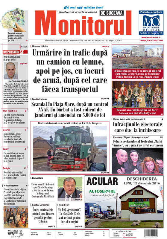 Urmărire în trafic după un camion cu lemne, apoi pe jos, cu focuri de armă, după cel care făcea transportulBalul Bobocilor de la Colegiul Naţional „Petru Rareş”