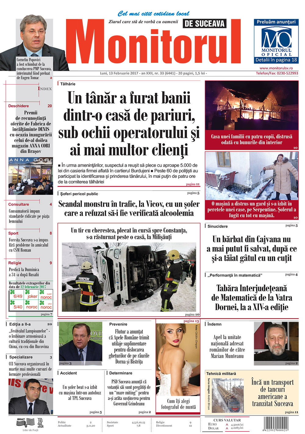 O maşină a distrus un gard şi s-a izbit în peretele unei case, pe Serpentine. Şoferul a fugit cu tot cu maşină.Balul Bobocilor de la Colegiul de Artă „Ciprian Porumbescu”