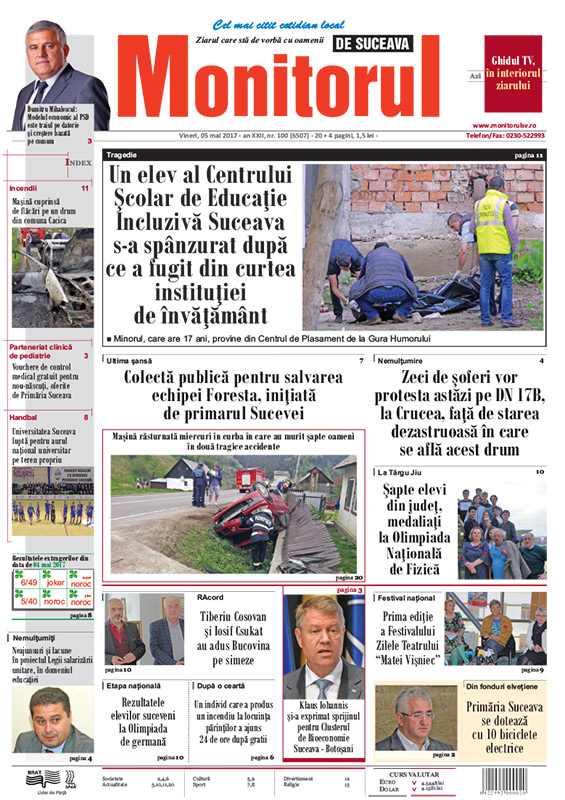 | Un elev al Centrului Şcolar de Educaţie Incluzivă Suceava s-a spânzurat după ce a fugit din curtea instituţiei de învăţământ |