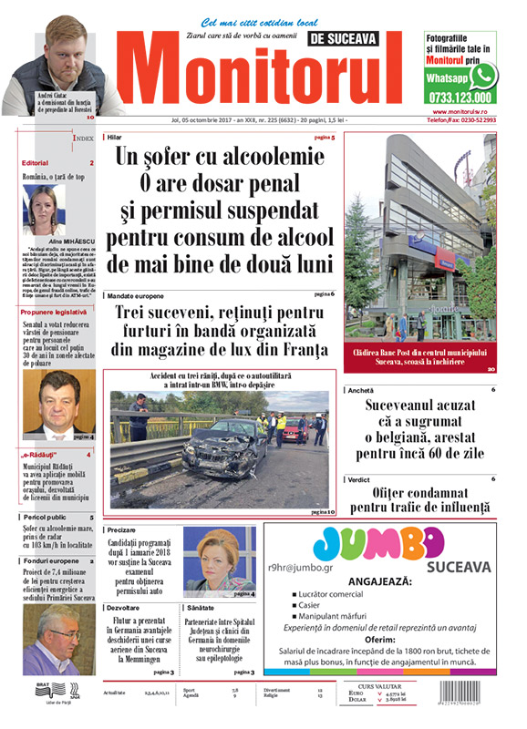 Șofer cu alcoolemie mare, prins de radar cu 103 km/h în localitateBalul Bobocilor de la Colegiul Naţional „Petru Rareş”