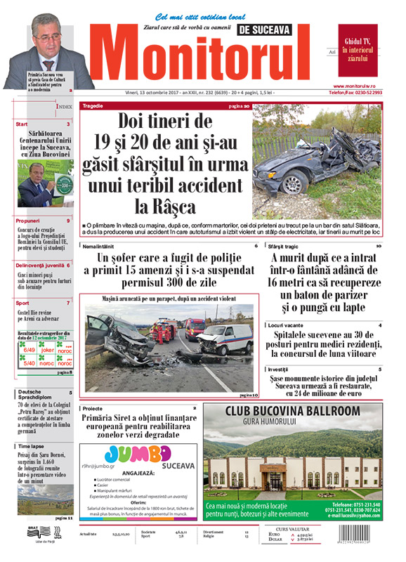 Un şofer care a fugit de poliţie a primit 15 amenzi şi i s-a suspendat permisul 300 de zileBalul Bobocilor de la Colegiul Naţional „Petru Rareş”