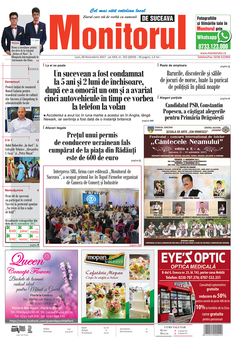 | Interpress SRL, firma care editează „Monitorul de Suceava”, a ocupat primul loc în Topul firmelor organizat de Camera de Comerţ şi Industrie |