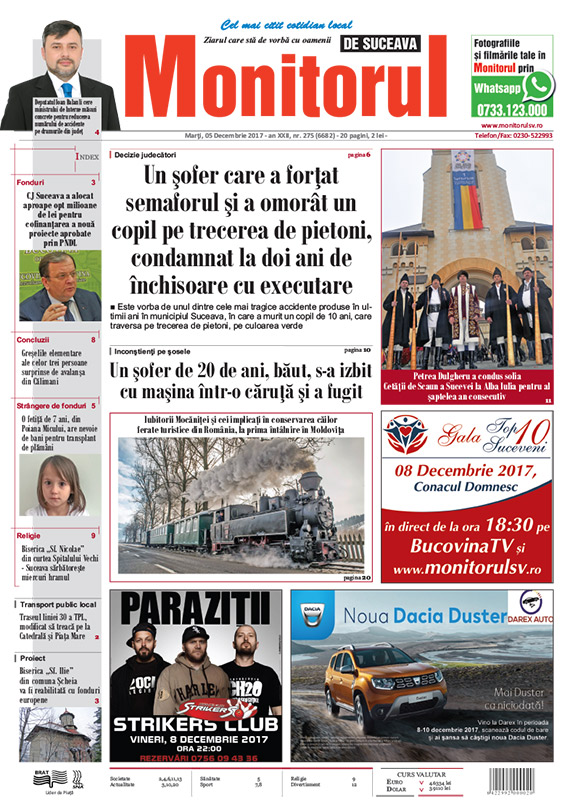 Deputatul Ioan Balan îi cere ministrului de Interne măsuri concrete pentru reducerea numărului de accidente pe drumurile din judeţBalul Bobocilor de la Colegiul Naţional „Petru Rareş”